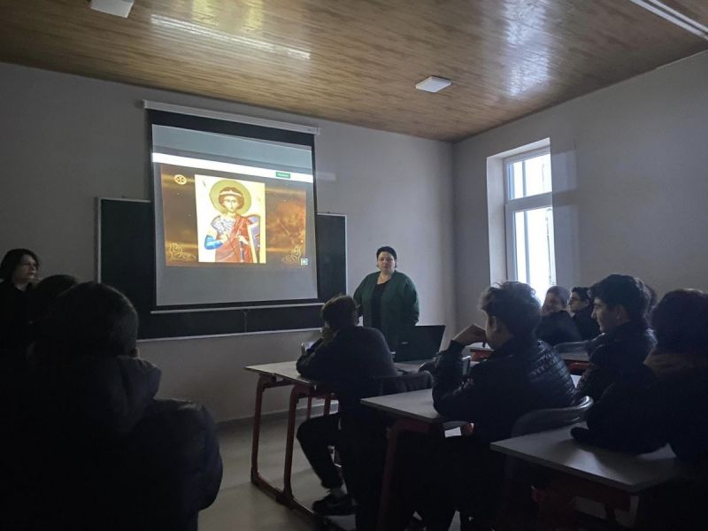 • პრეზენტაციაზე მასწავლებლებმა ისაუბრეს წმინდა გიორგის ცხოვრებაზე, მის როლზე საქართველოს ცხოვრებაში, წმინდანის სახელზე აგებულ სალოცავებზე აგრეთვე წმინდანის კულტზე ქართულ ფოლკლორში.