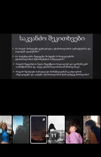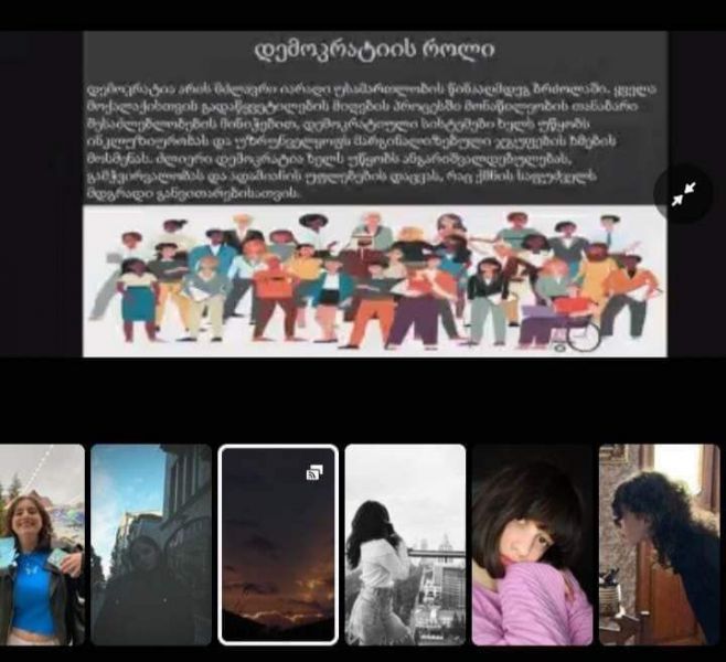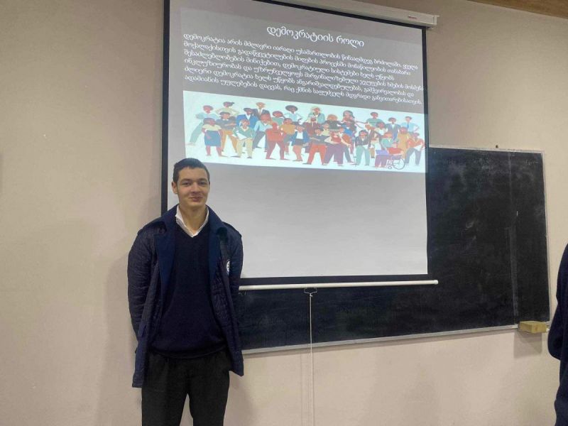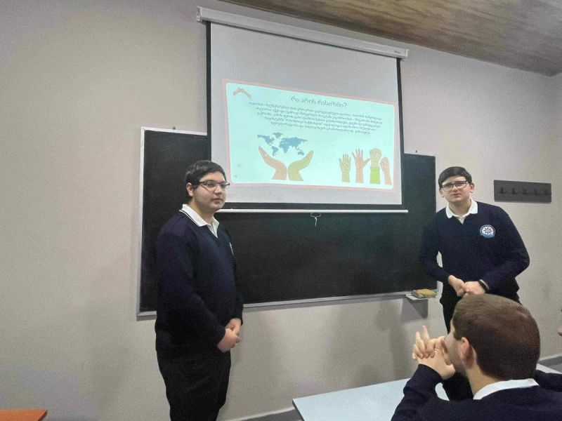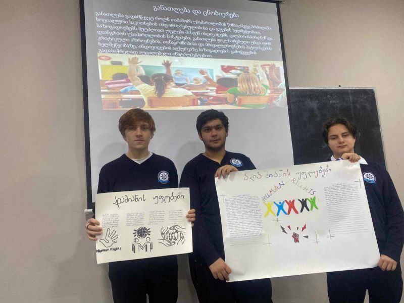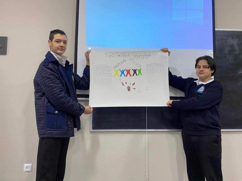 მოსწავლეებმა წარადგინეს პრეზენტაციები ადამიანის უფლებათა დაცვის და სამართლიანი ნორმების შესახებ.